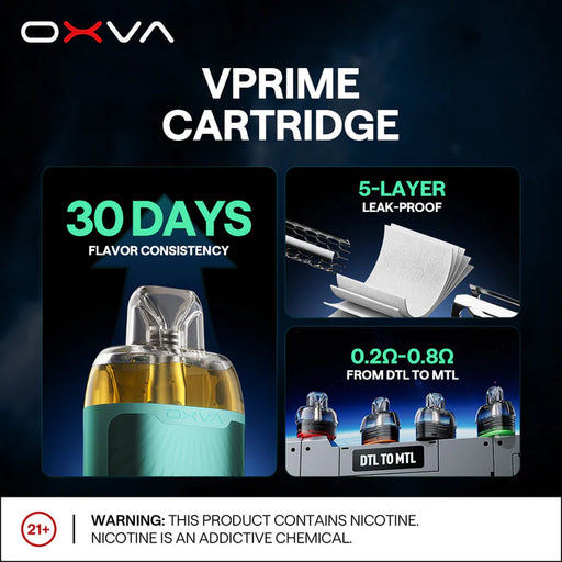 OXVAOXVA VPRIME Replacement Pods Designed exclusively for the OXVA VPRIME Kit, the OXVA VPRIME Cartridge is powered by Unitech 2.0 technology, deliveri...